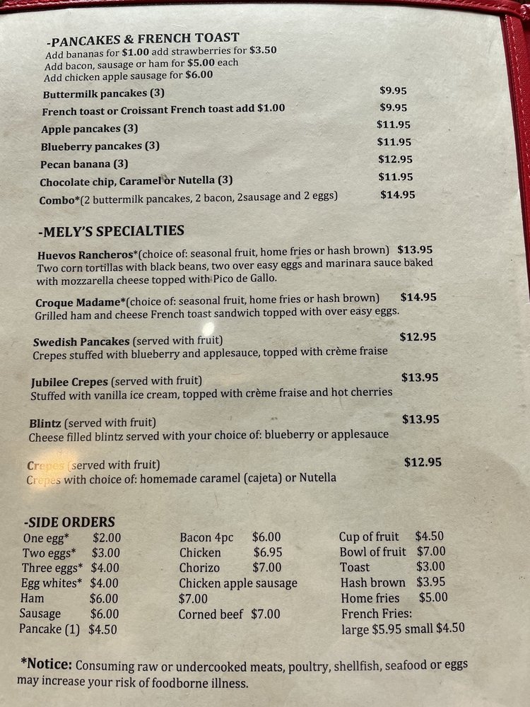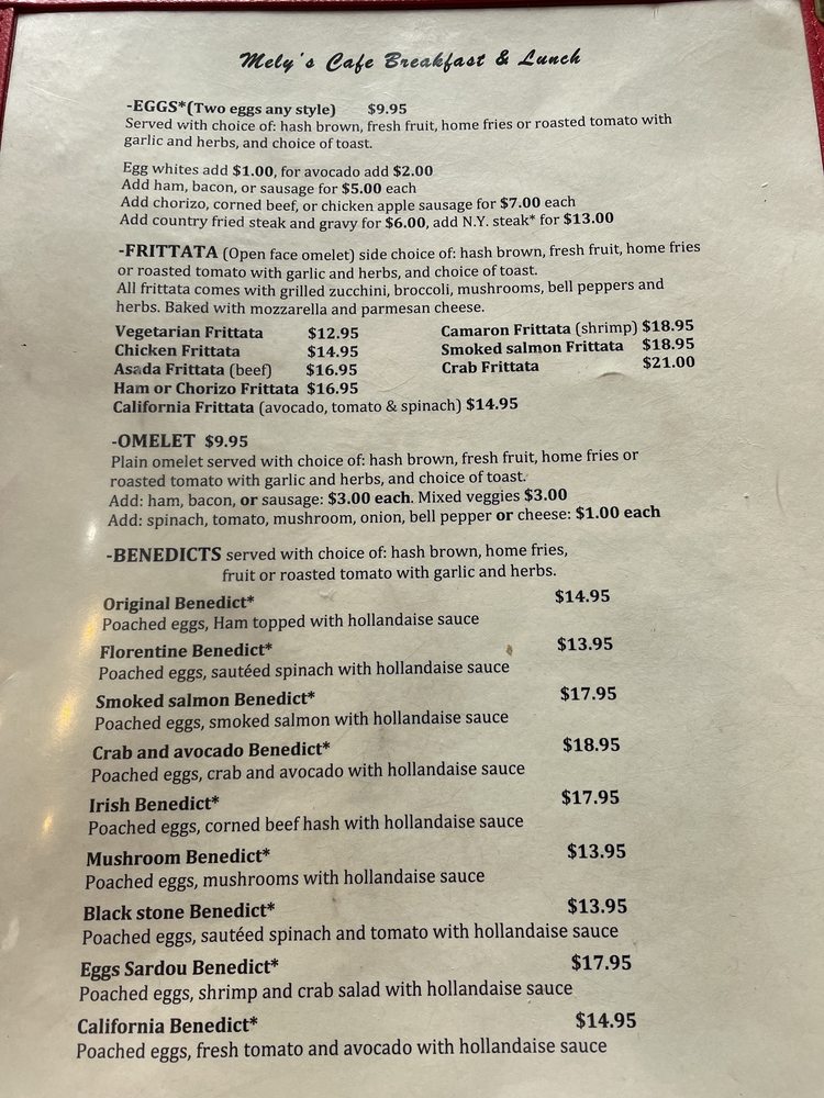 Introducing Mely’s Cafe, a charming spot nestled in San Pablo, CA, that seamlessly blends Italian and American flavors with a delightful breakfast and brunch menu. This cozy café is not only a hidden gem but also a culinary sanctuary for food lovers. With specialties like the Blintz Crepes and Croque Madame, Mely's offers delicious dishes crafted from locally sourced ingredients. For those with a morning sweet tooth, the Croissant French Toast and various pancakes provide a heavenly start to your day.
